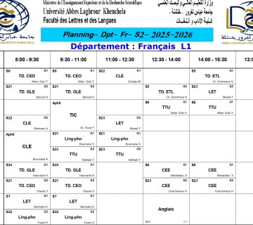 Timetable for the Department of French Language and Literature L1