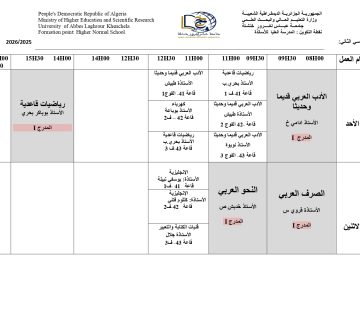 • التاليWeekly Timetable for the First Semester of the Academic Year 2025–2026 – Second Year in Commercial Sciences