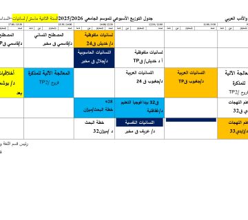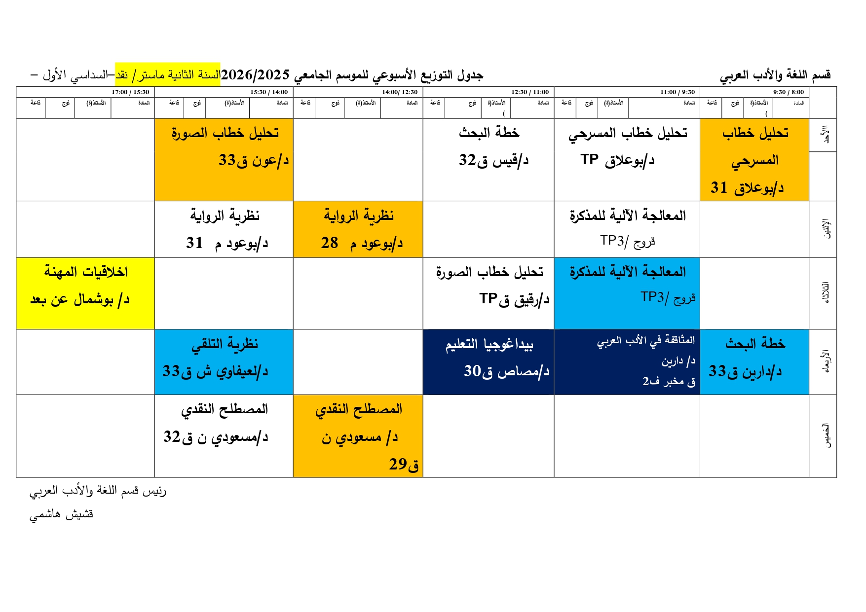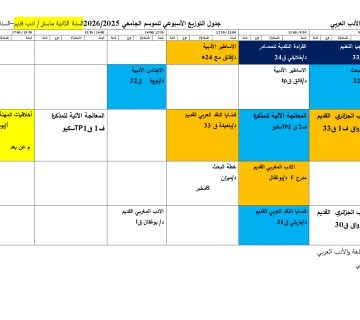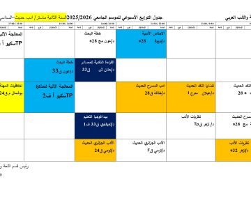Temporal Distribution of the Department of Arabic Language and Literature M2