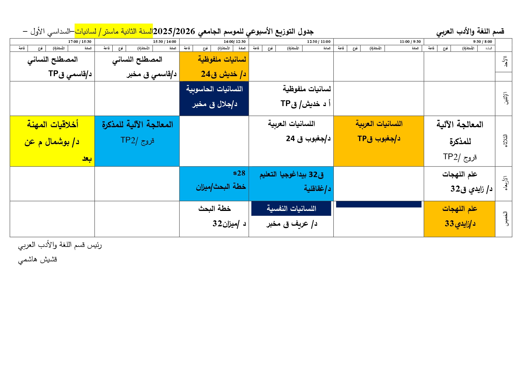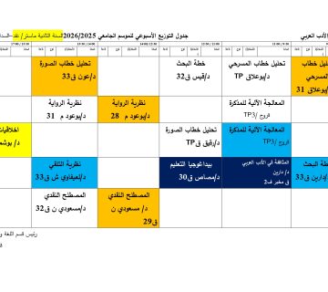 Temporal Distribution of the Department of Arabic Language and Literature M2