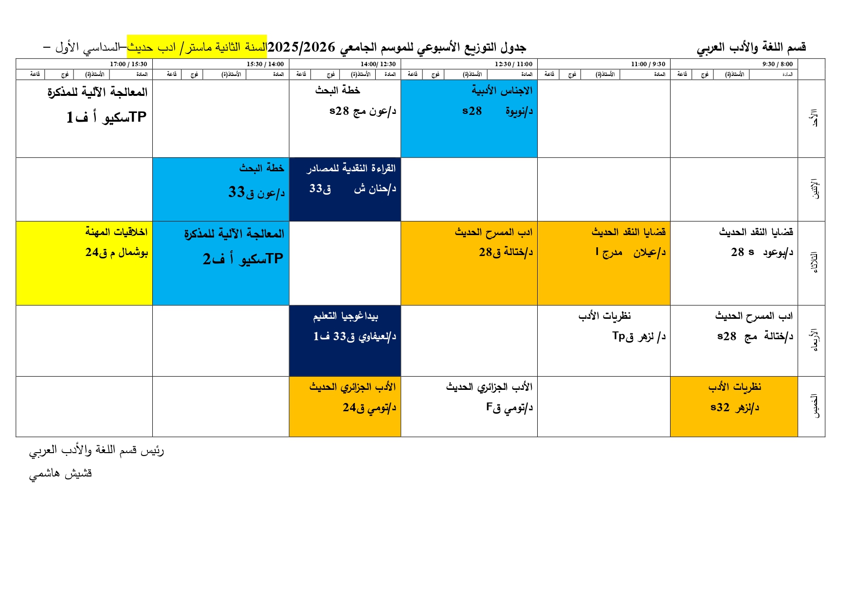Temporal Distribution of the Department of Arabic Language and Literature M2