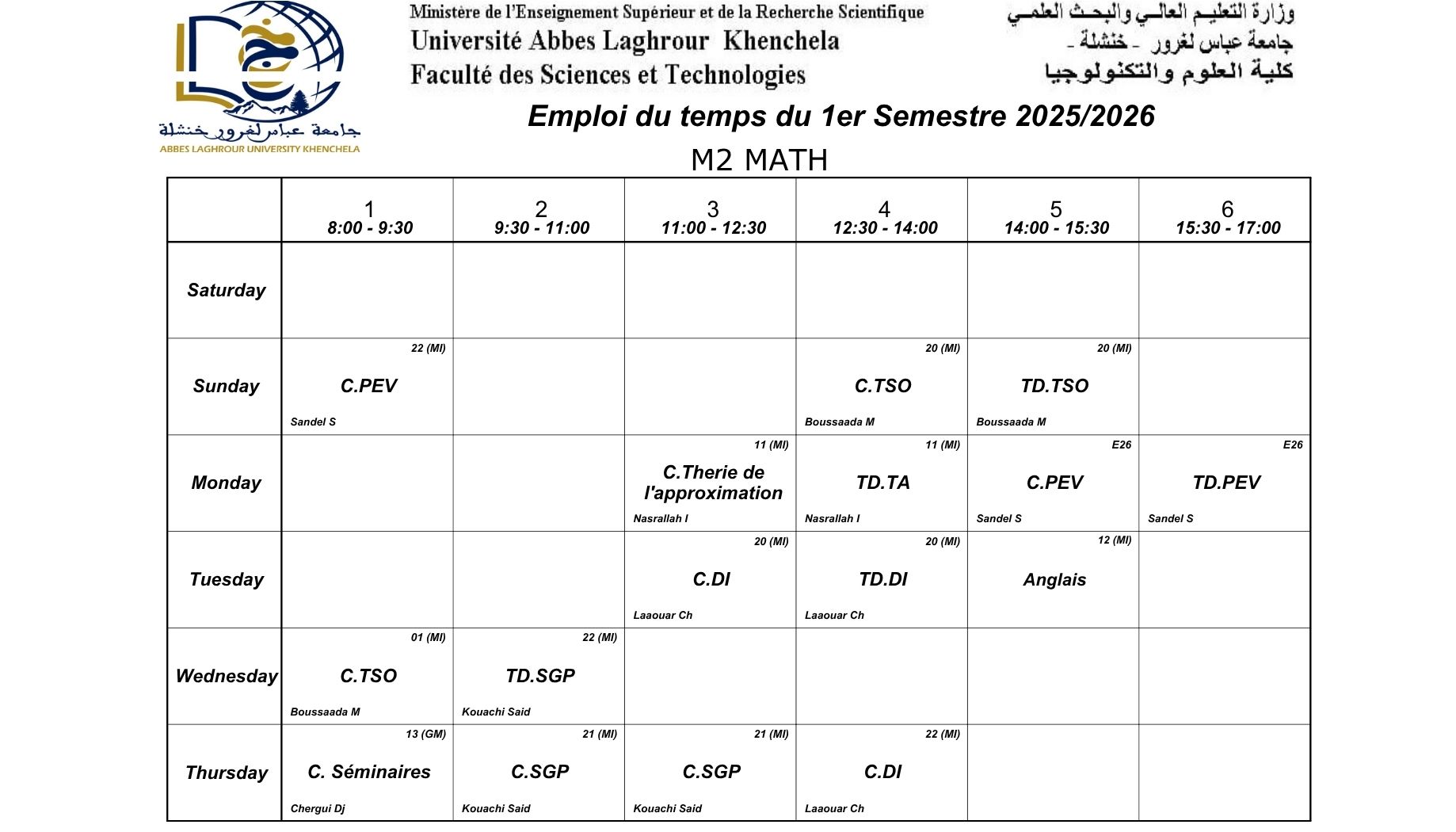 • سابقTimetable department mathematics-M1