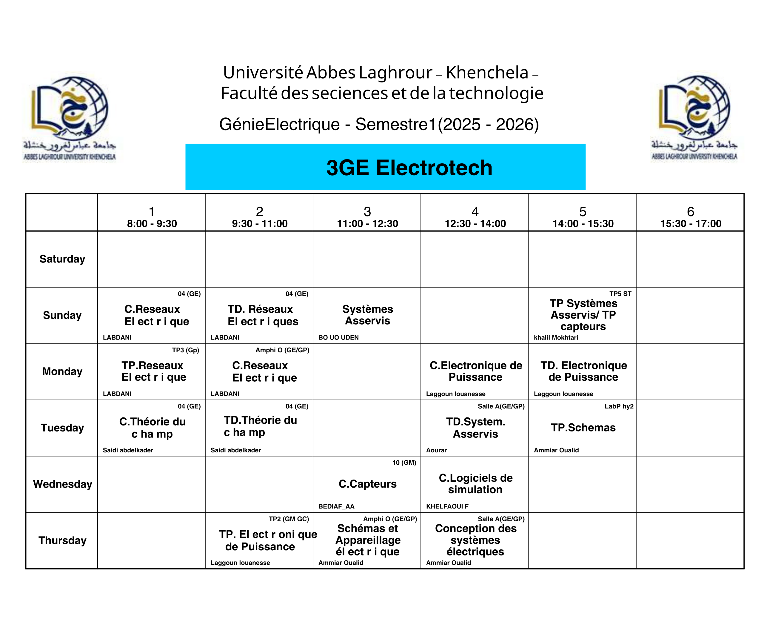 • سابقTimetable Department of Electrical Engineering -L3