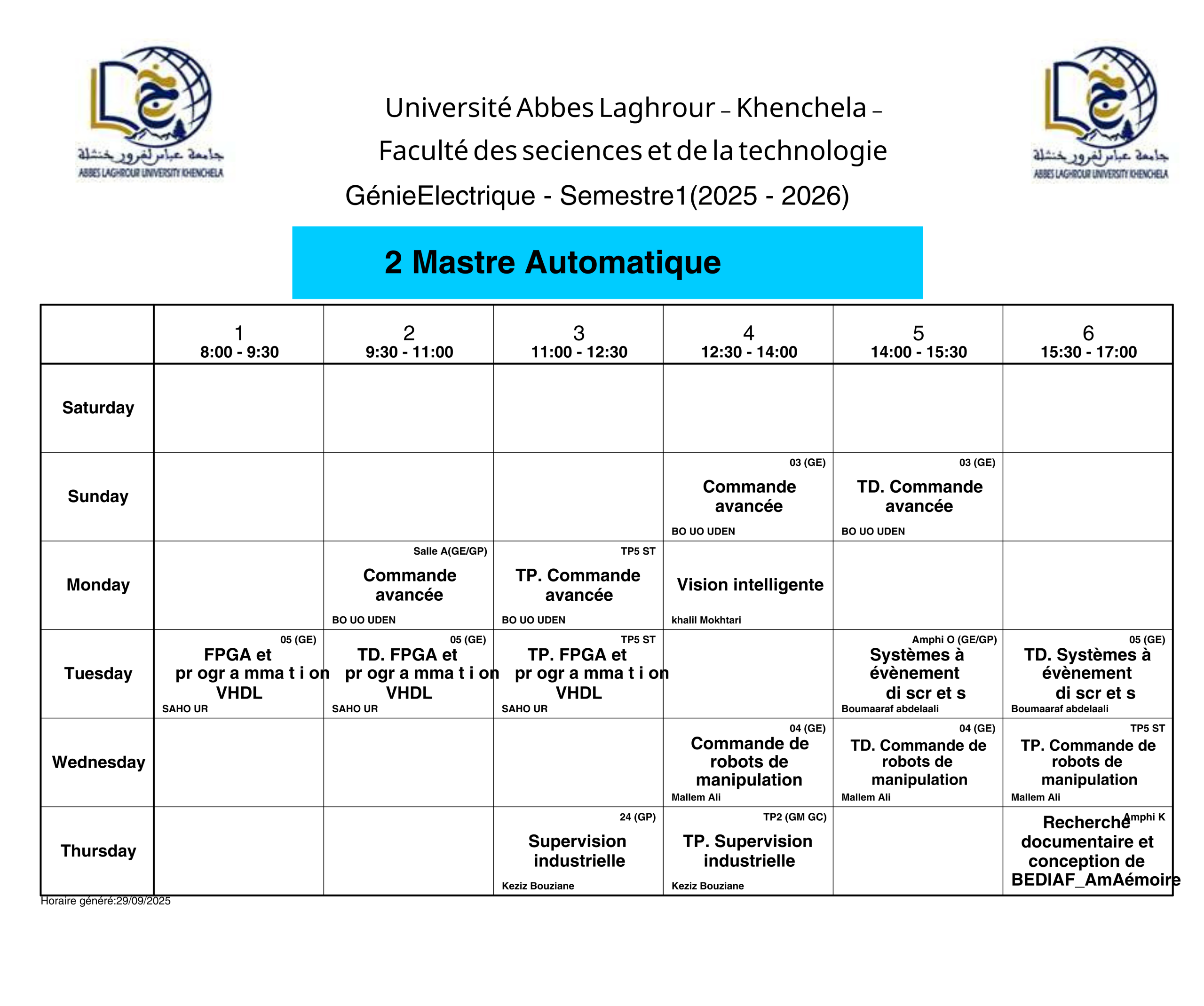 Timetable Department of Electrical Engineering -M2