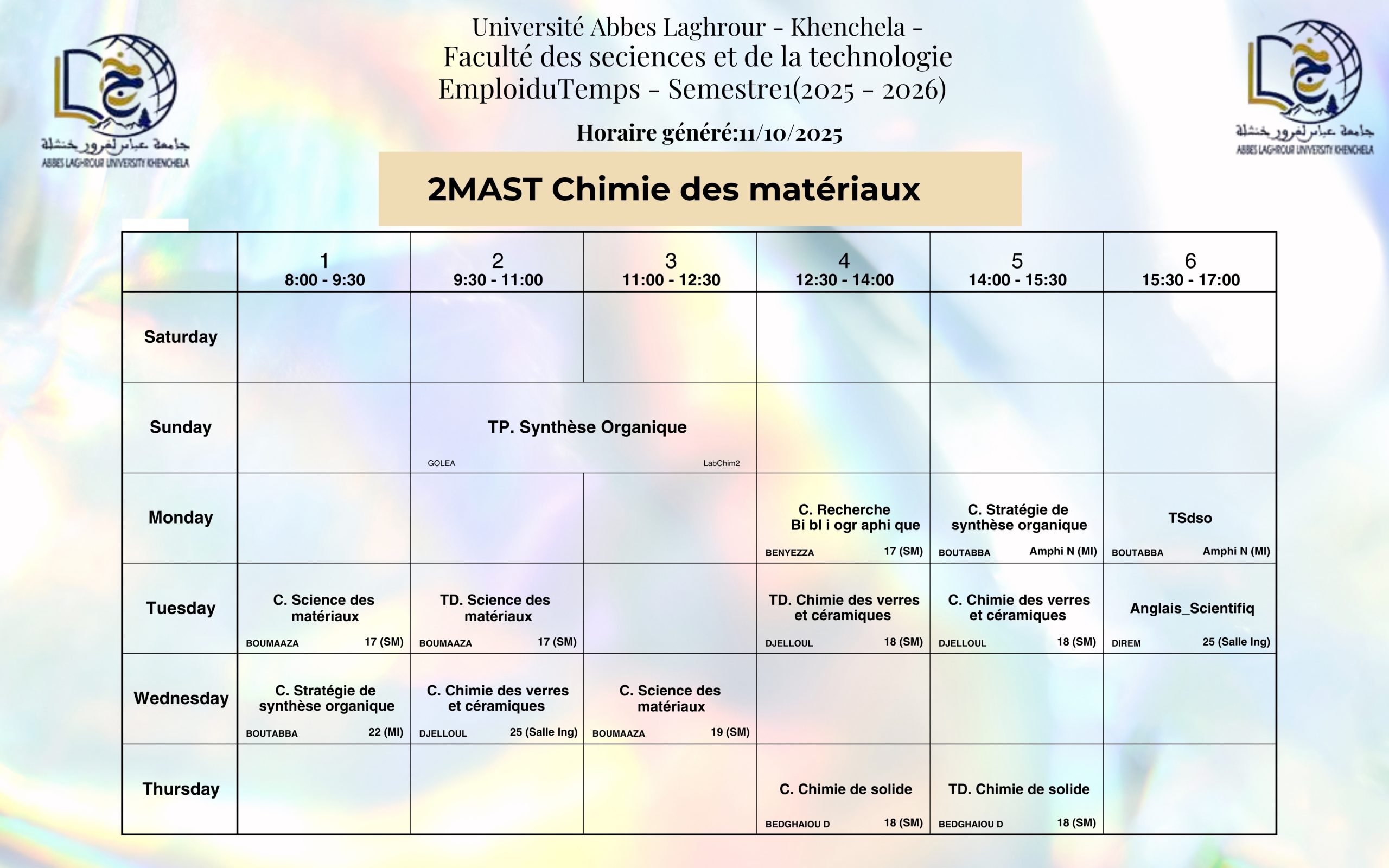 • سابقTimetable Timetable Department of Material Sciences -M1