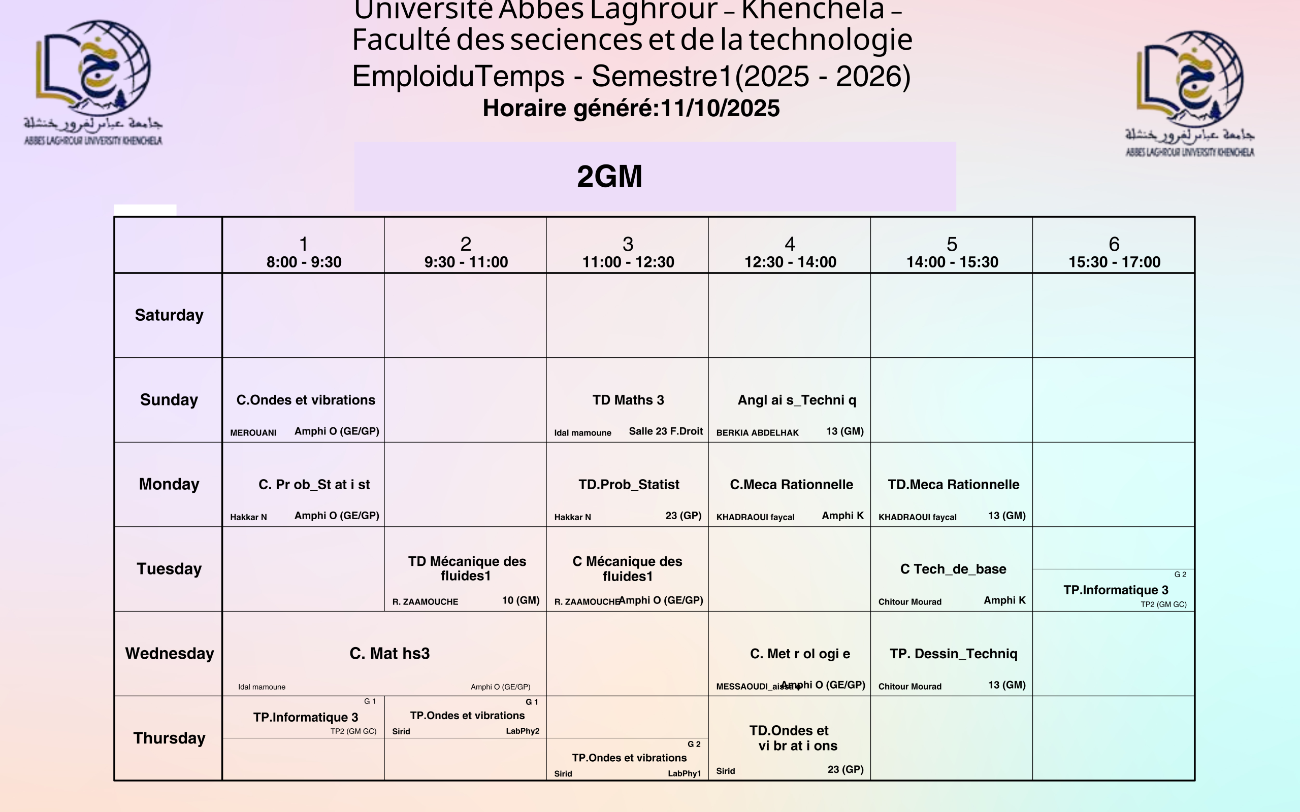 • التاليTimetable Timetable Department of Mechanical Engineering -L3