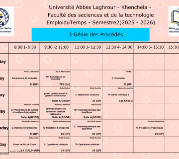 • التاليTimetable Timetable Department of Process Engineering -M1