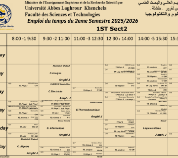 Timetable Department of Science and Technology -L1 date de modification 13-02-2026