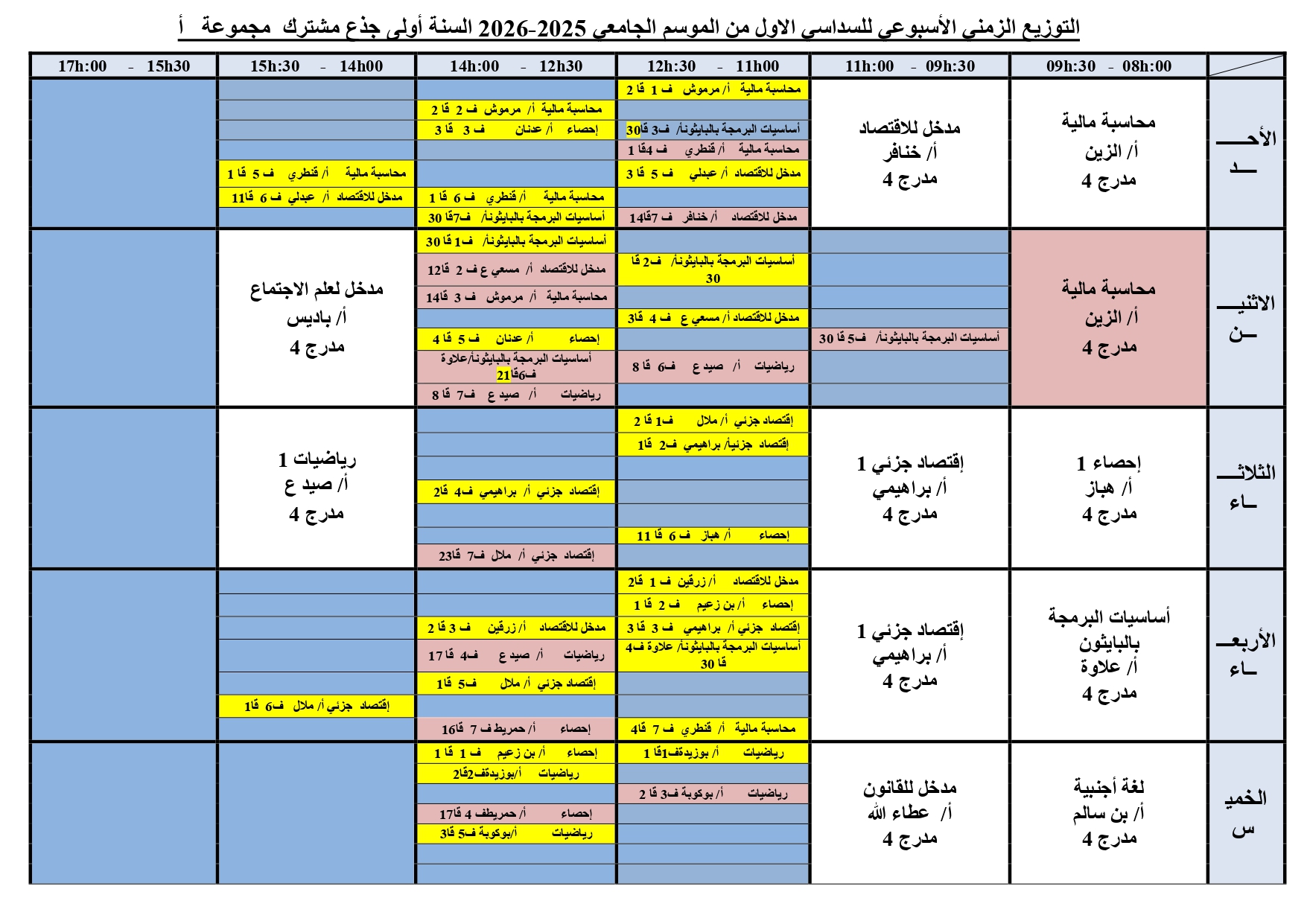 • التاليTimetable for First-Year Bachelor’s – Group B