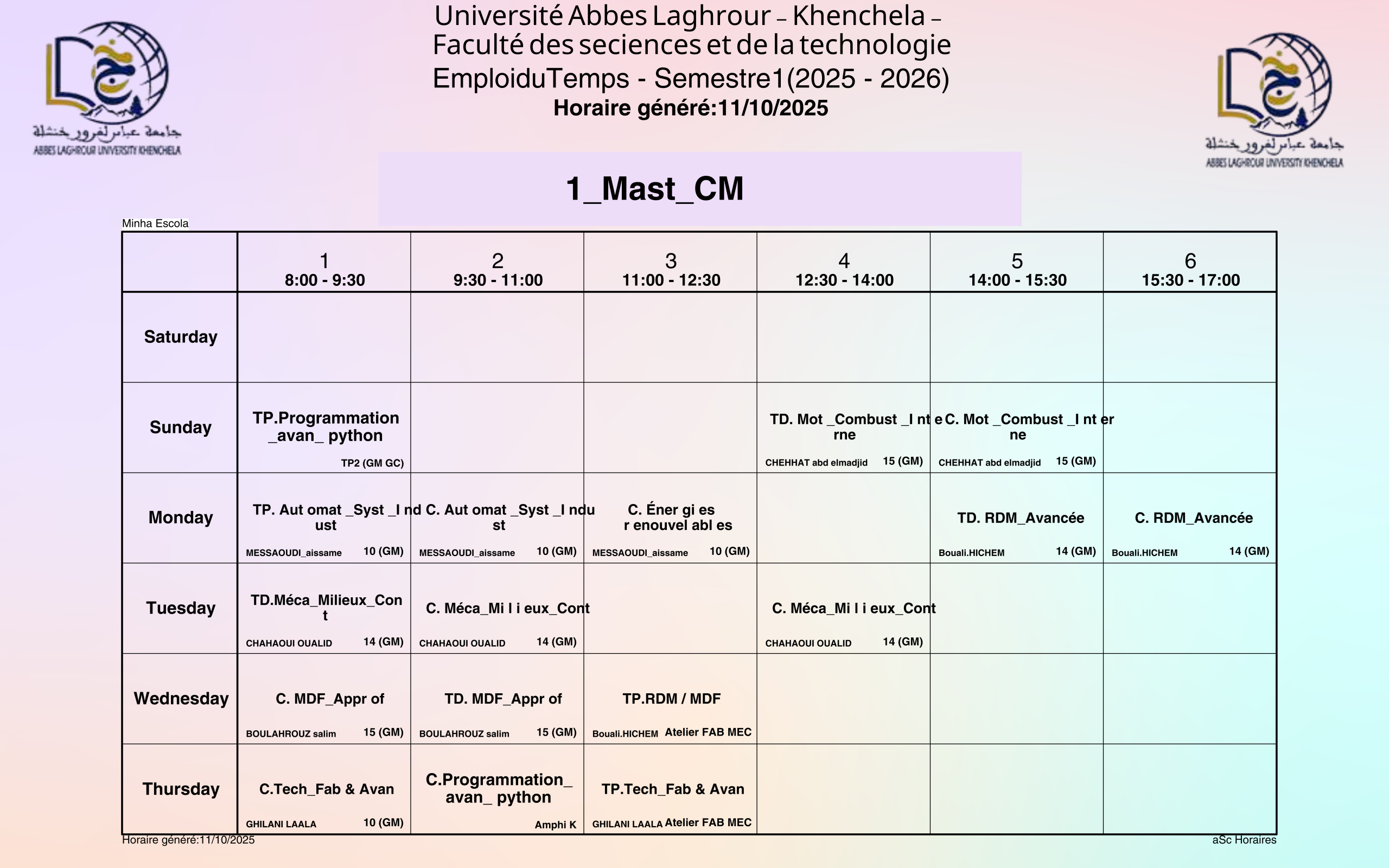 • التاليTimetable Timetable Department of Mechanical Engineering -M1