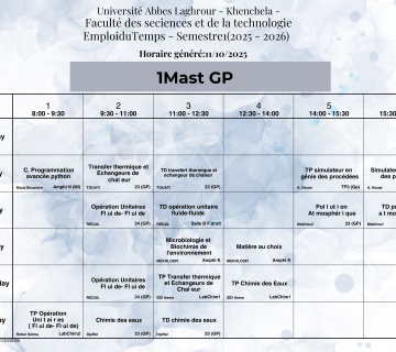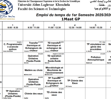 • التاليTimetable Department of Process Engineering -M2