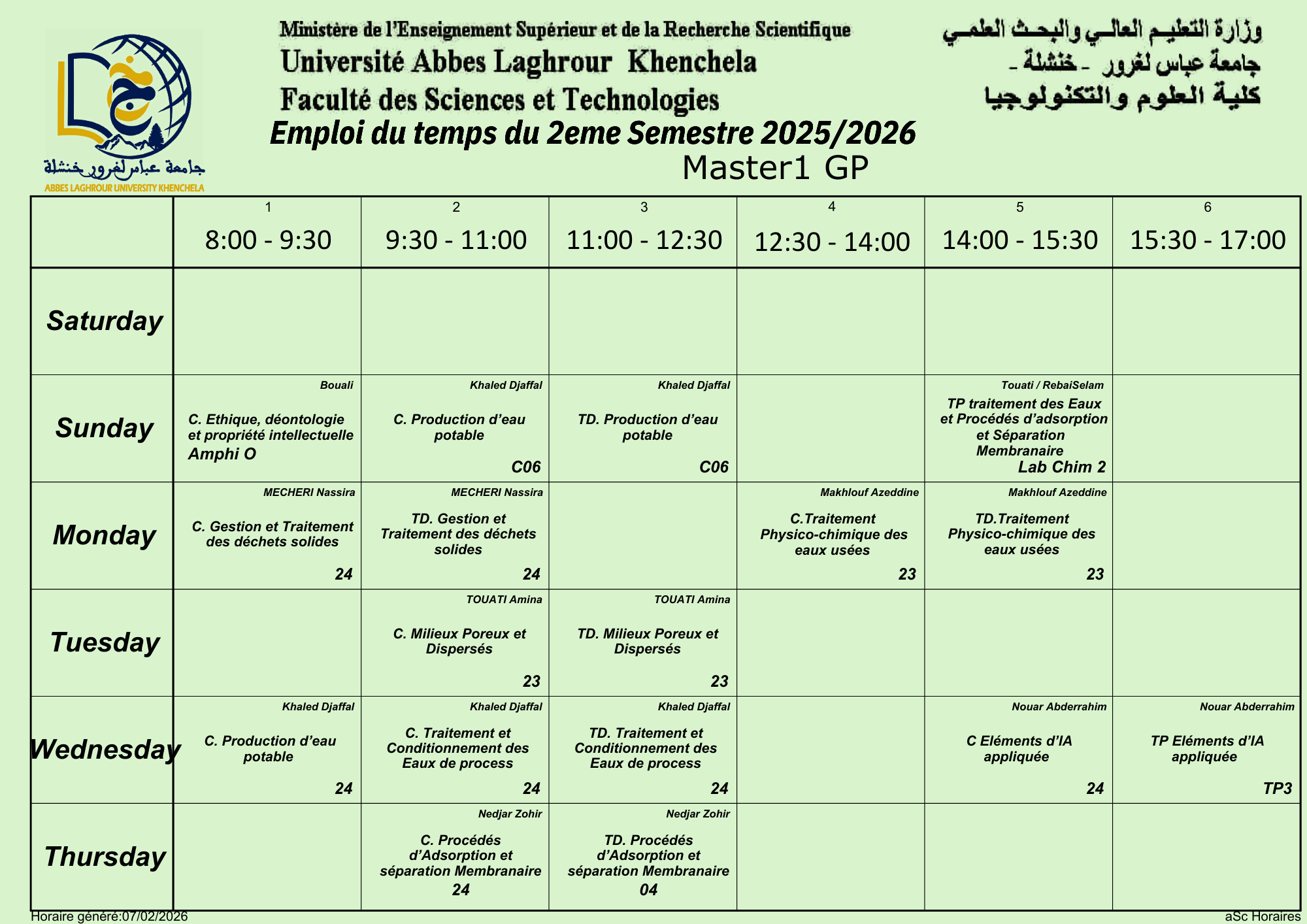 • سابقTimetable Department of Process Engineering -L2