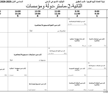 Weekly schedule for 2nd year Master’s degree in Law – State and Institutions