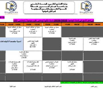 Weekly schedule for Political Science – Second year of Bachelor’s degree