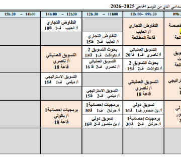 Weekly timetable for the second semester of the 2025-2026 academic year, third year marketing advertisements