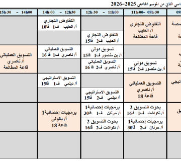 Weekly timetable for the second semester of the 2025-2026 academic year, third year, Business Administration advertisements