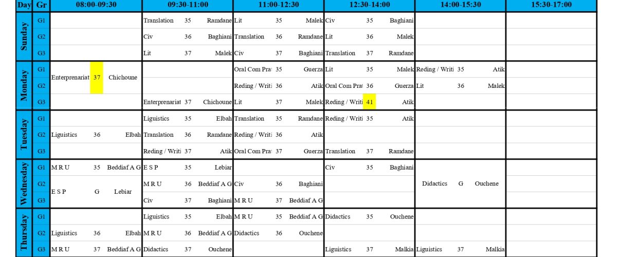 Emploi du temps du Deuxième semestre 2025/2026