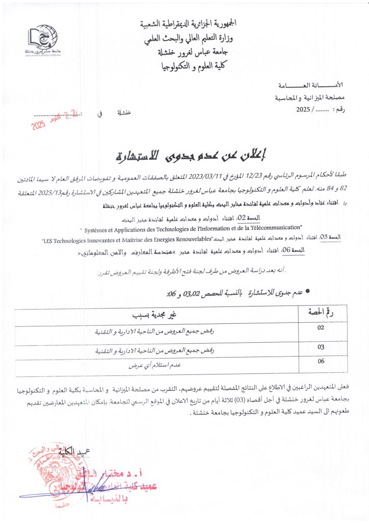 Annulation des Cours – Consultation N° 13 (Séances 2, 3, 6)