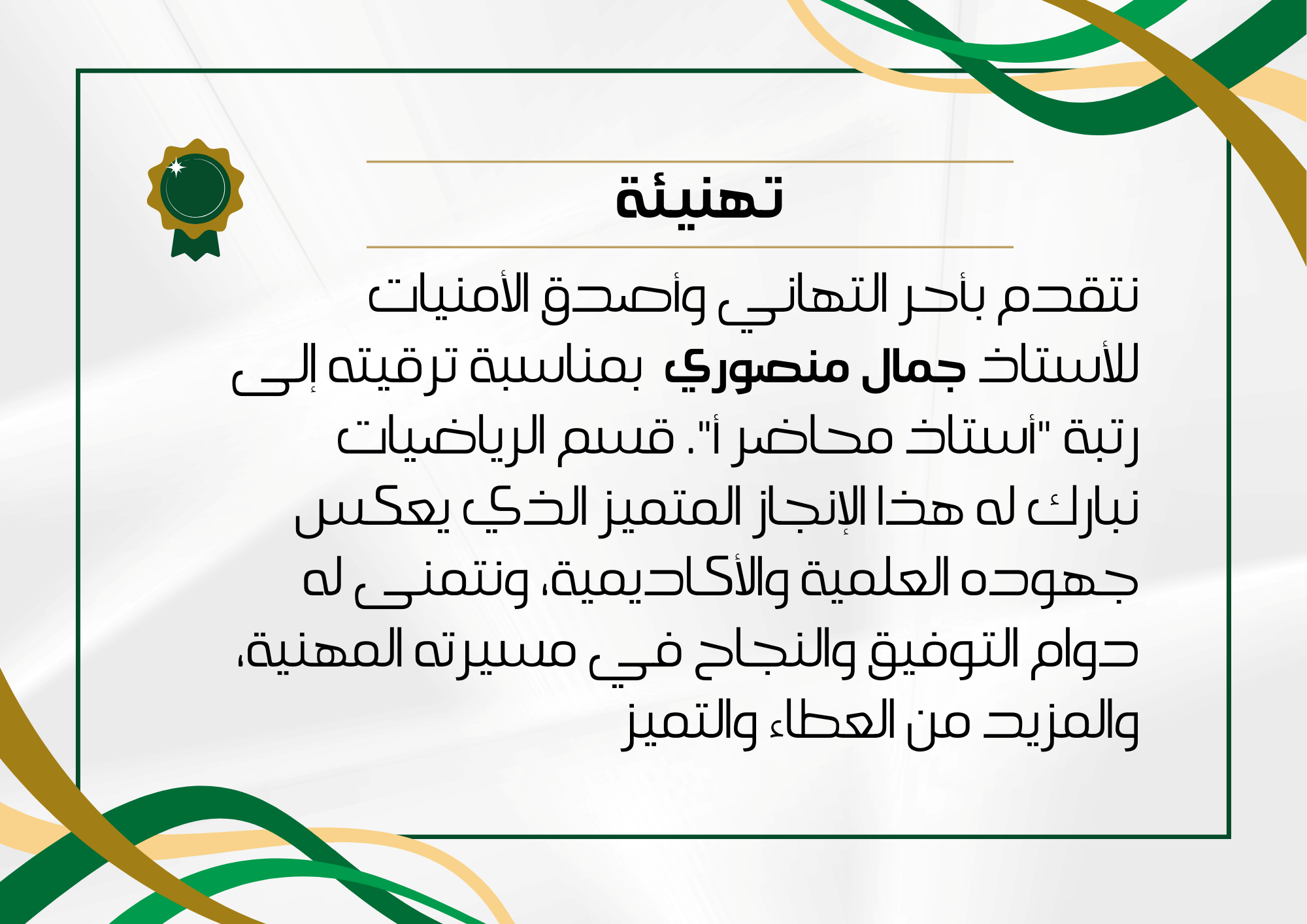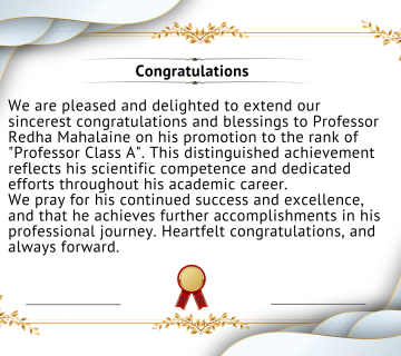 Félicitations officielles à l’occasion de la promotion au grade de Professeur