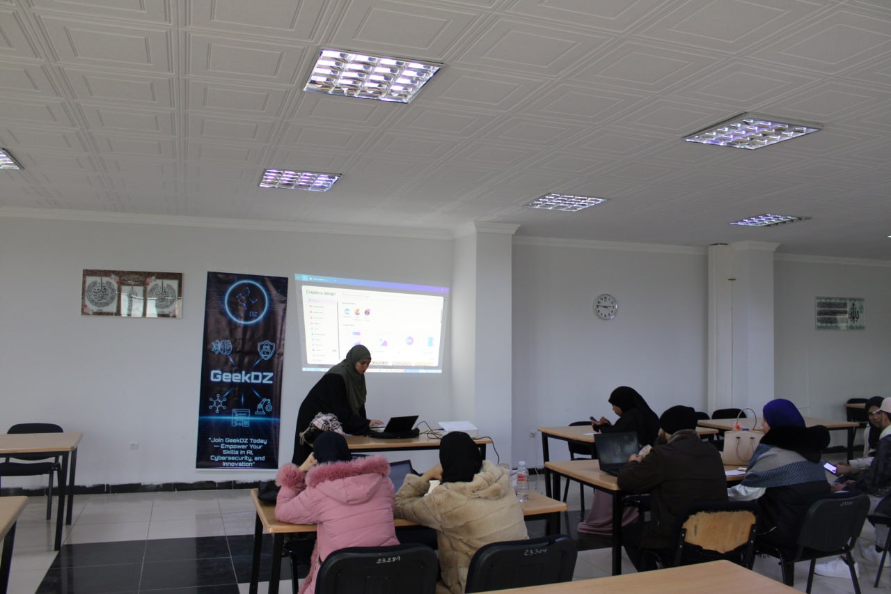 Dans le cadre du cours « Débats scientifiques en anglais » organisé par le Club scientifique, l’application de conception Canva a été présentée aux débutants. Le cours abordait ses composants et ses ressources, et présentait les fonctionnalités des versions gratuite et payante. Il s’agissait d’un cours purement pratique où les étudiants mettaient en application leurs connaissances sur Canva, outil permettant de concrétiser des idées créatives.