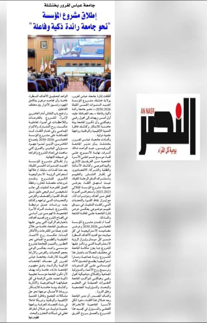 Couverture médiatique : Hall 4.0 de l’Université Abbes Laghrour Khenchela – El Bilad TV