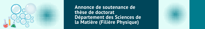 Annonce de soutenance de thèse de doctorat Département des Sciences de la Matière (Filière Physique)