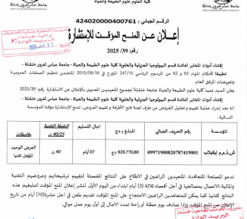 Annonce de subvention temporaire pour consultation n° 2025/39
