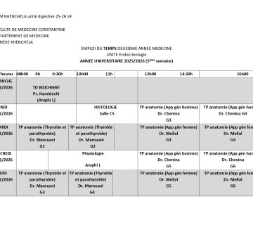 emploi du temps deuxieme année medecine unite endocrinologie 5eme semaine 2025.2026