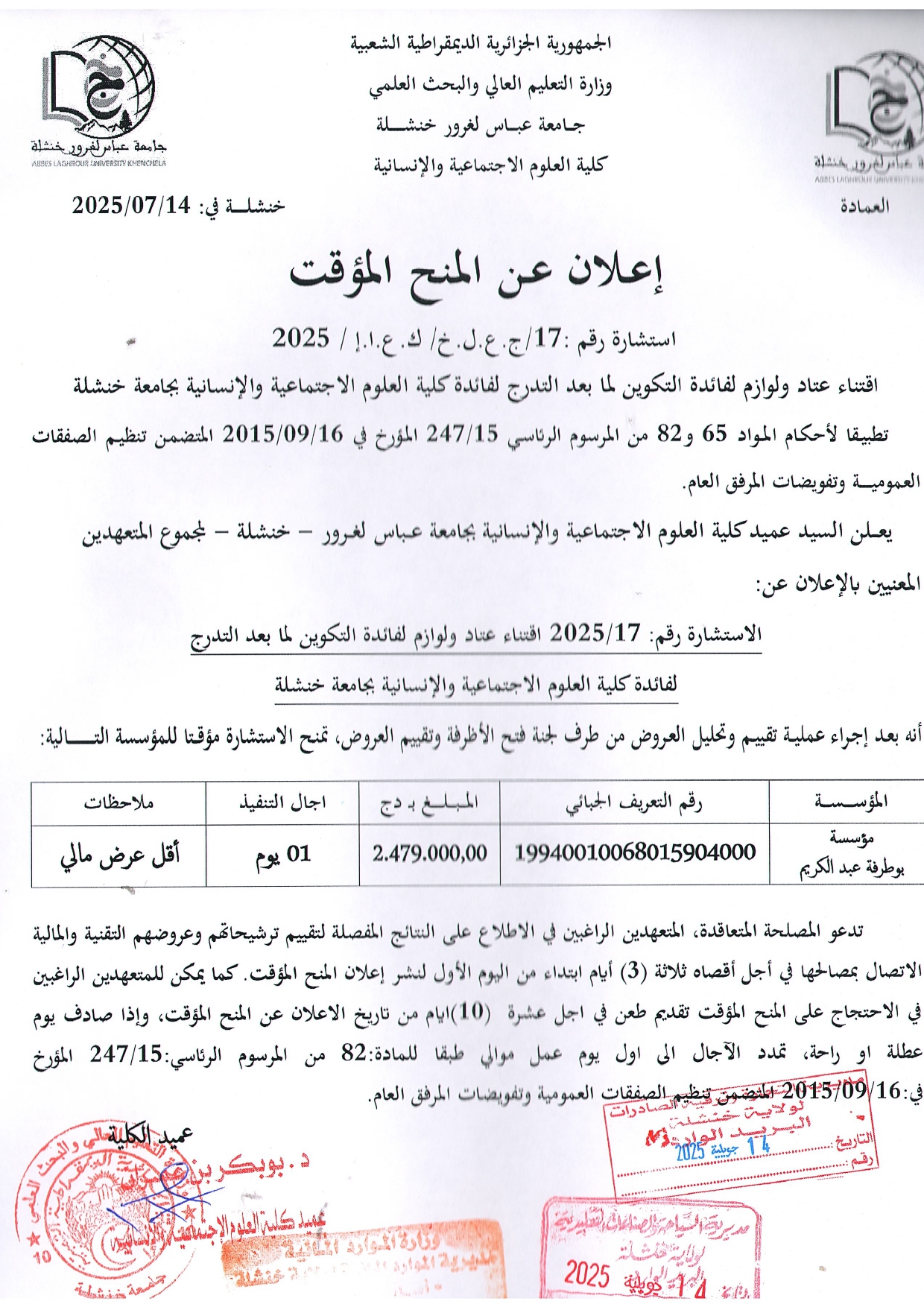 17-اقتناء عتاد ولوازم لفائدة التكوين لما بعد التدرج