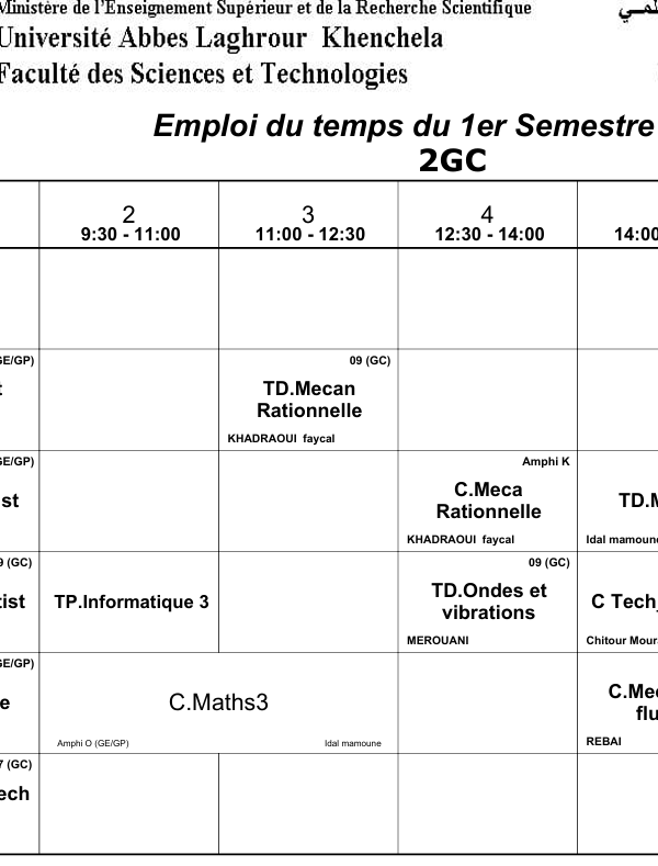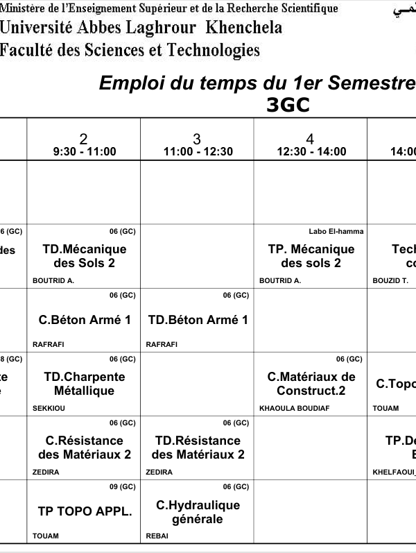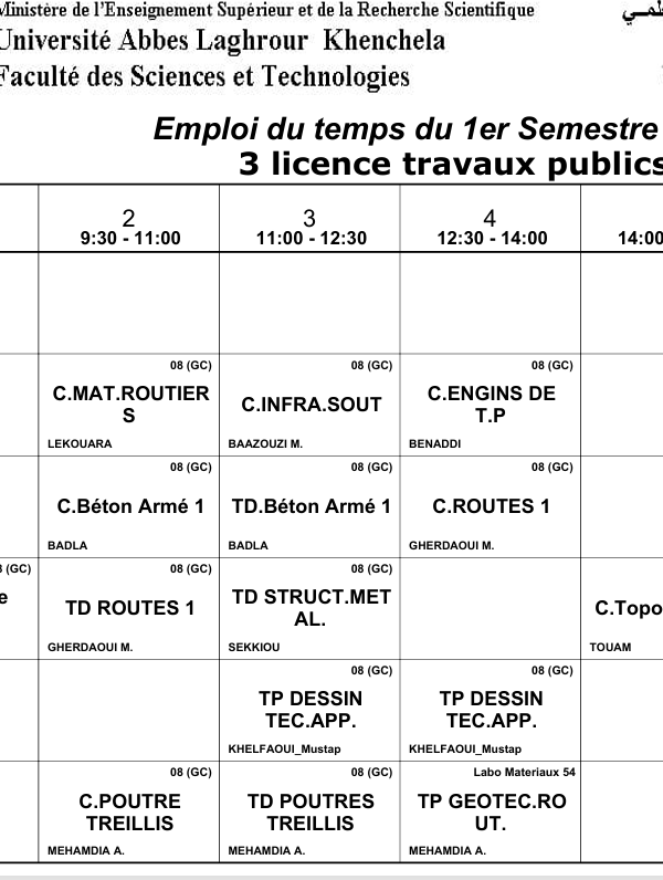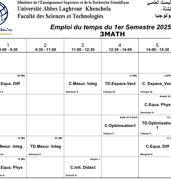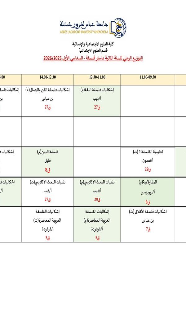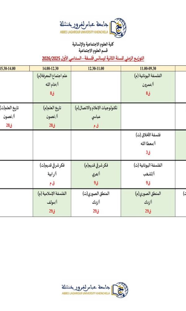 Distribution du temps – Département des sciences sociales – 3 Philosophieكلية العلوم الاجتماعية والإنسانية2025-10-08