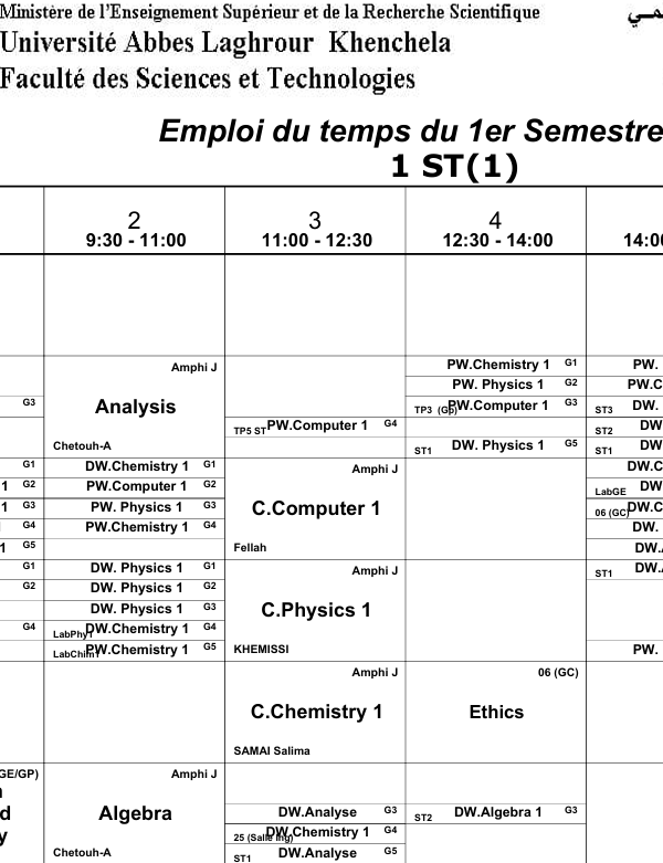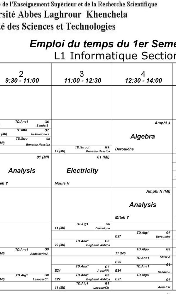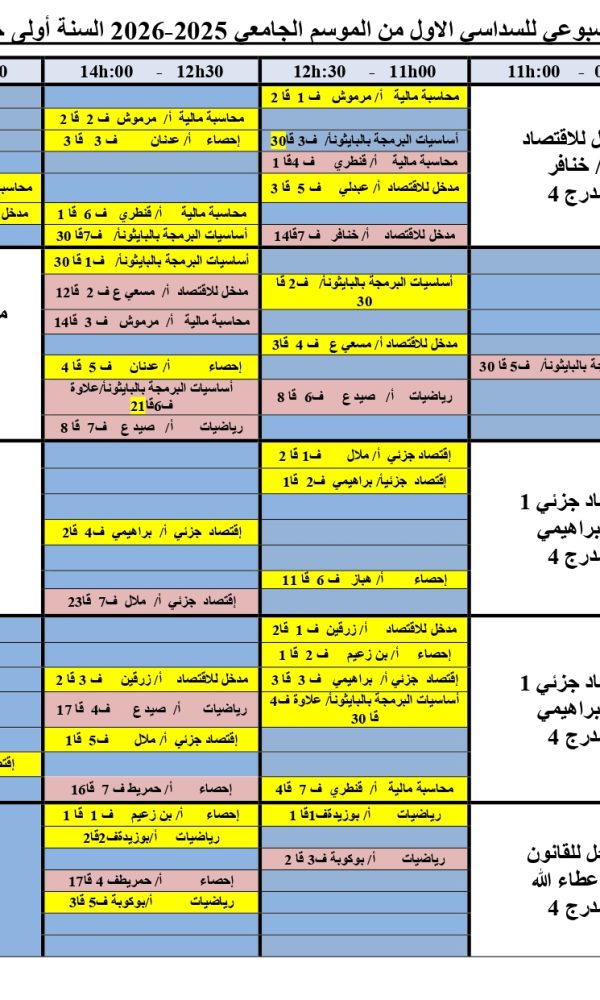 Emploi du temps de première année Licence – Section Bكلية العلوم الاقتصادية, التجارية و علوم التسيير2025-10-08