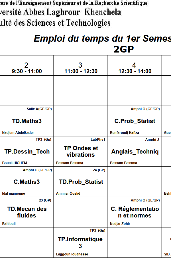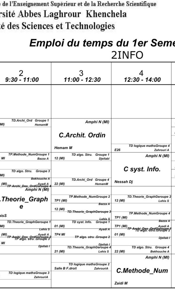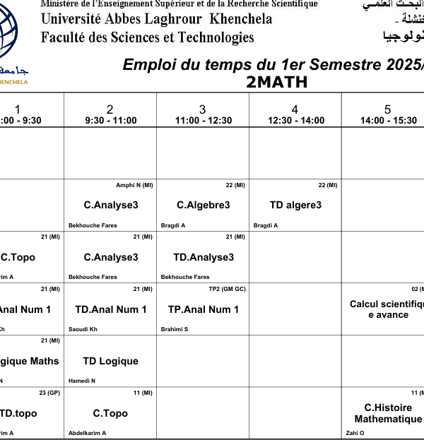Distribution du temps – Département des sciences sociales – 2 Philosophieكلية العلوم الاجتماعية والإنسانية2025-10-08