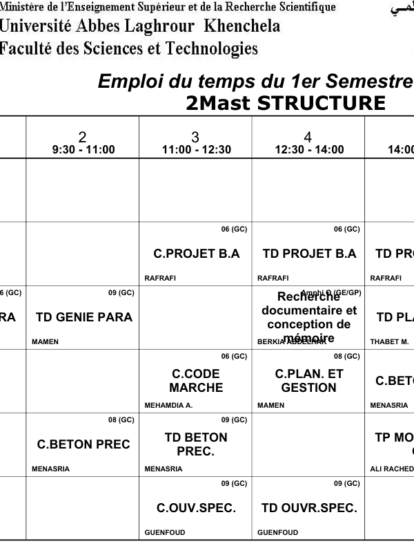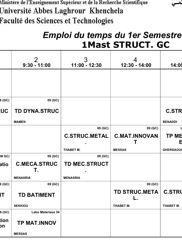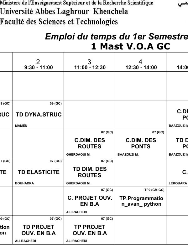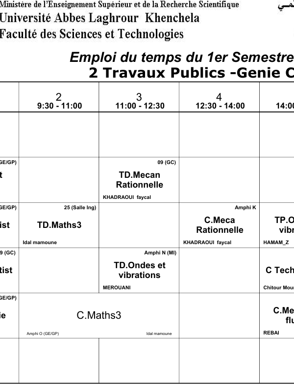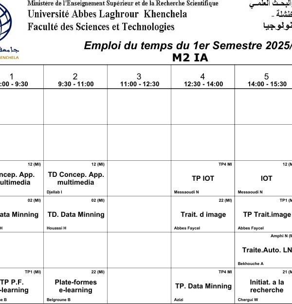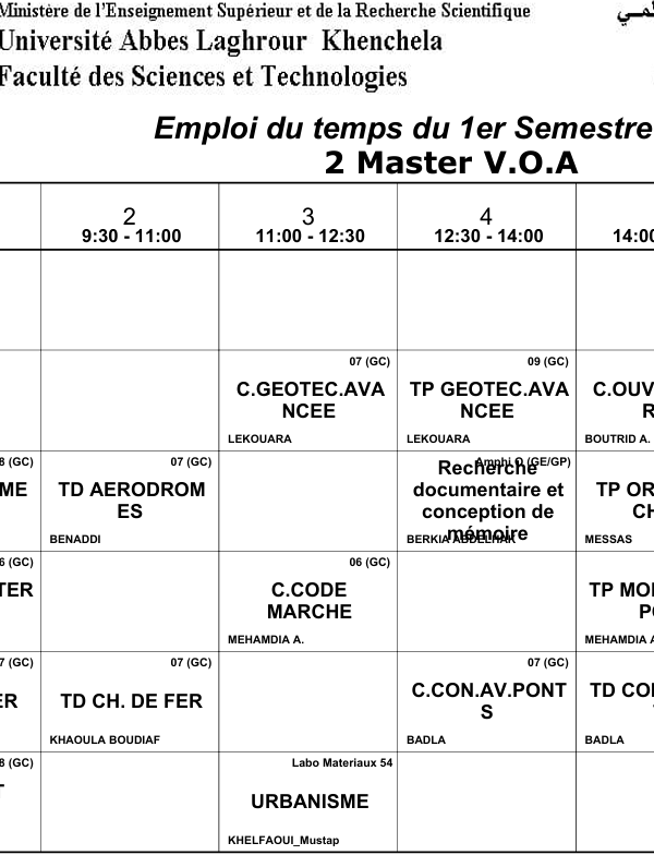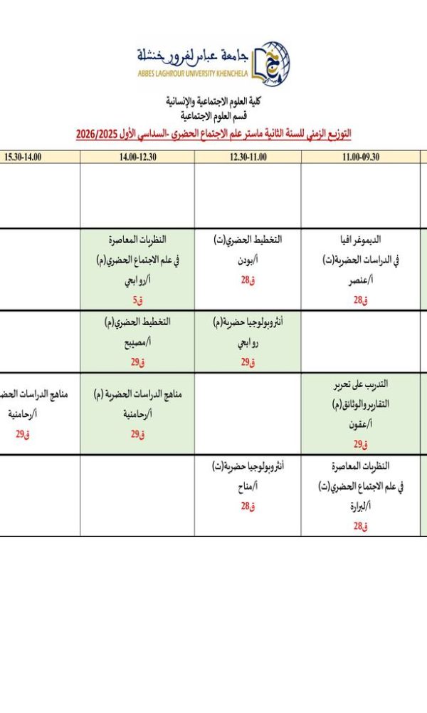 Distribution-Temps-Département des Sciences Sociales-M2 Sociologie Urbaineكلية العلوم الاجتماعية والإنسانية2025-10-08