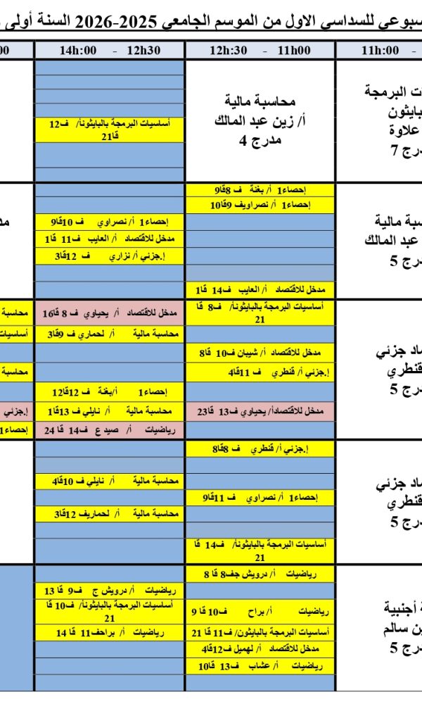 Emploi du temps de première année Licence – Section Aكلية العلوم الاقتصادية, التجارية و علوم التسيير2025-10-08