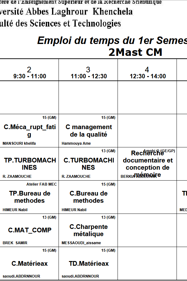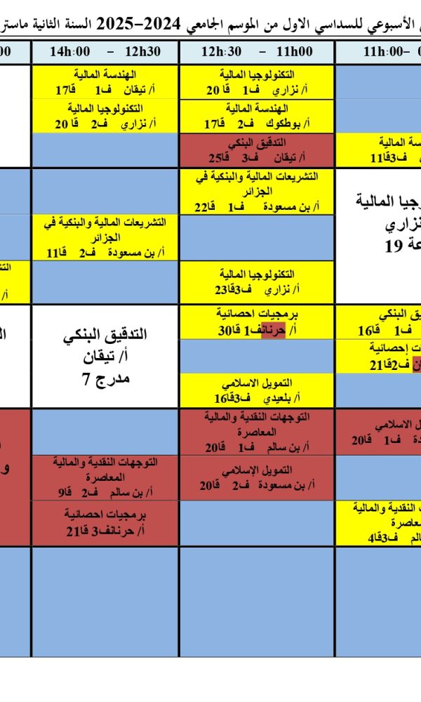 Emploi du temps hebdomadaire du premier semestre de l’année universitaire 2024–2025 – Deuxième année Master Économie Monétaire et Financièreكلية العلوم الاقتصادية, التجارية و علوم التسيير2025-10-08
