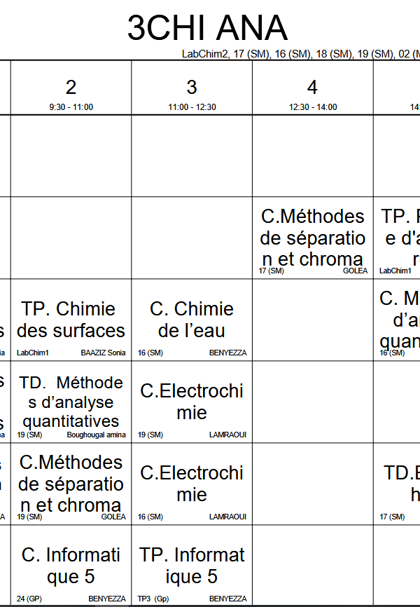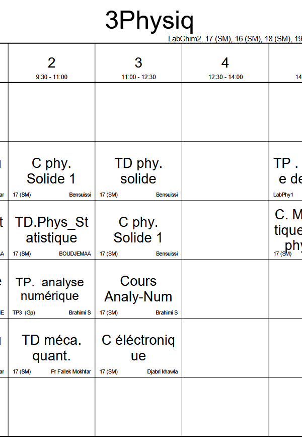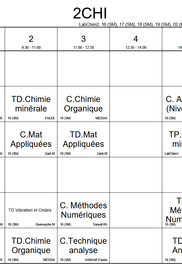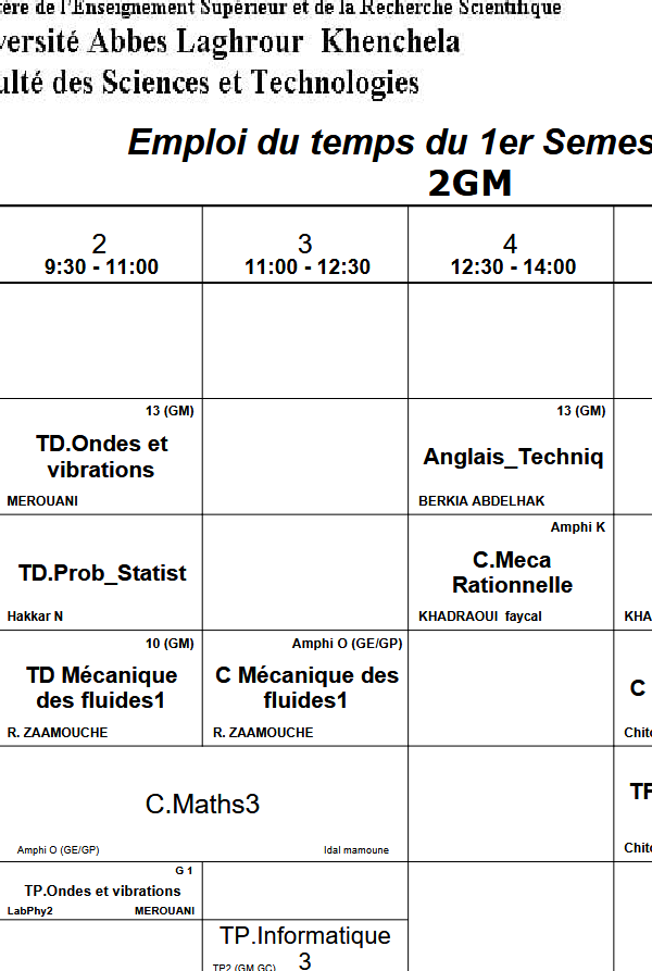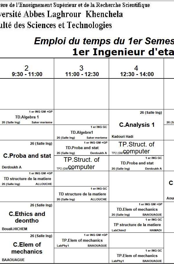 Emploi du temps hebdomadaire du premier semestre de l’année universitaire 2025–2026 – Deuxième année Sciences Commercialesكلية العلوم الاقتصادية, التجارية و علوم التسيير2025-10-08