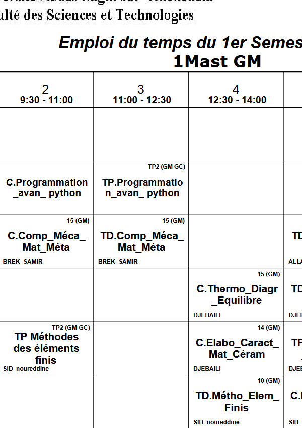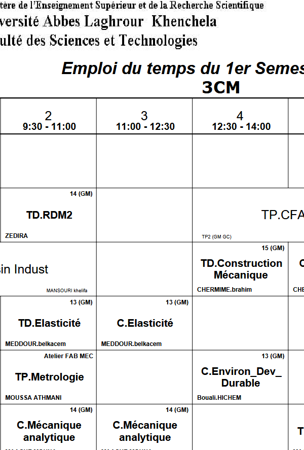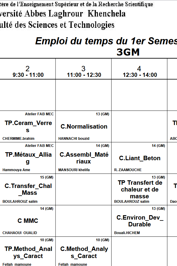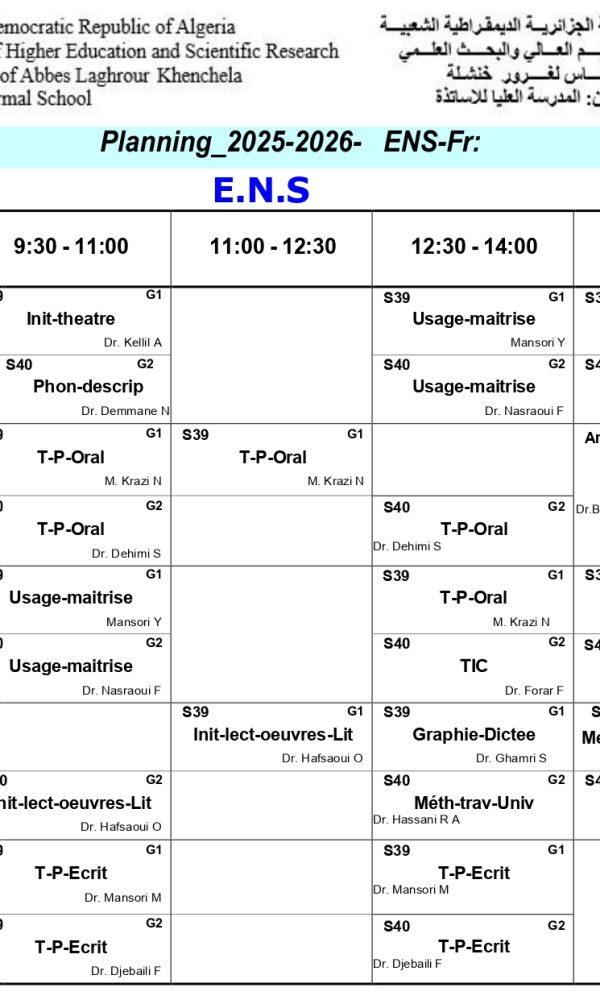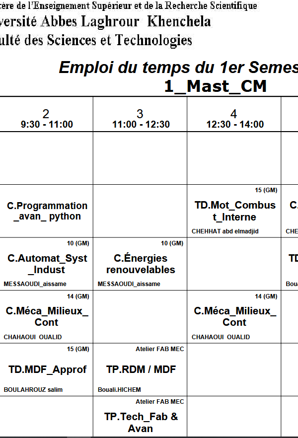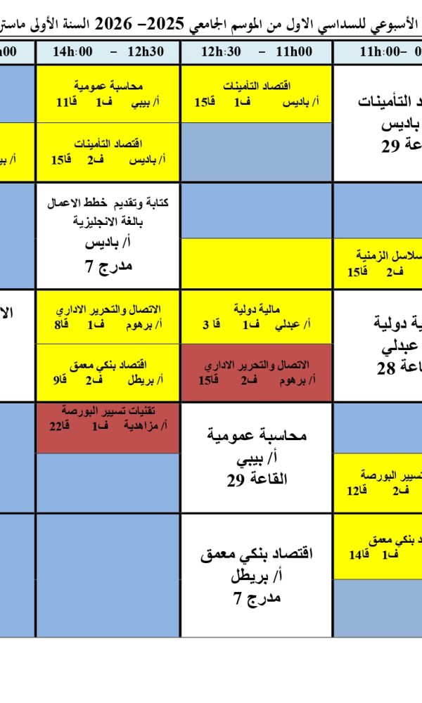 Emploi du temps hebdomadaire du premier semestre de l’année universitaire 2025–2026 – Première année Master Économie Monétaire et Financièreكلية العلوم الاقتصادية, التجارية و علوم التسيير2025-10-08