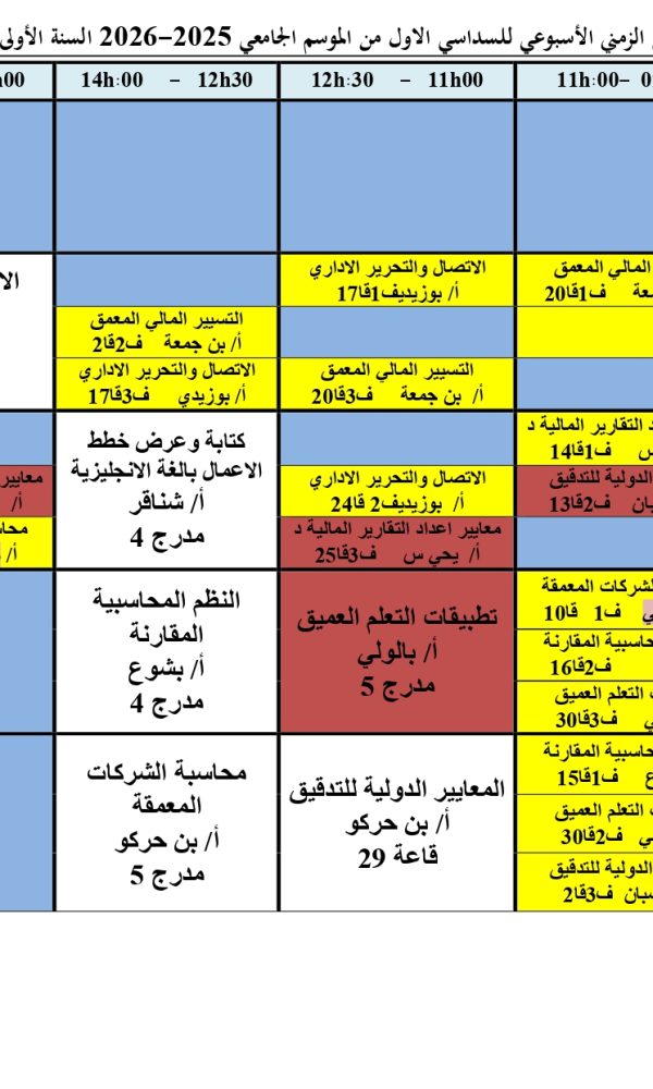 Emploi du temps hebdomadaire du premier semestre de l’année universitaire 2025–2026 – Première année Master Comptabilitéكلية العلوم الاقتصادية, التجارية و علوم التسيير2025-10-09