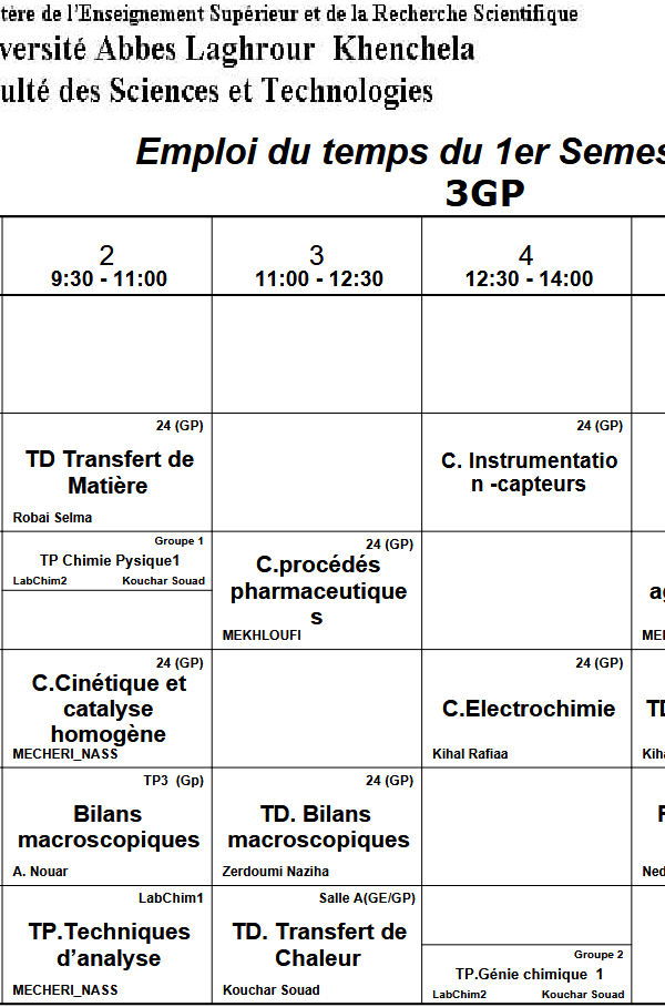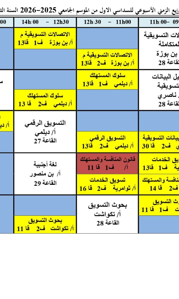 Emploi du temps hebdomadaire du premier semestre de l’année universitaire 2025–2026 – Troisième année Marketingكلية العلوم الاقتصادية, التجارية و علوم التسيير2025-10-08