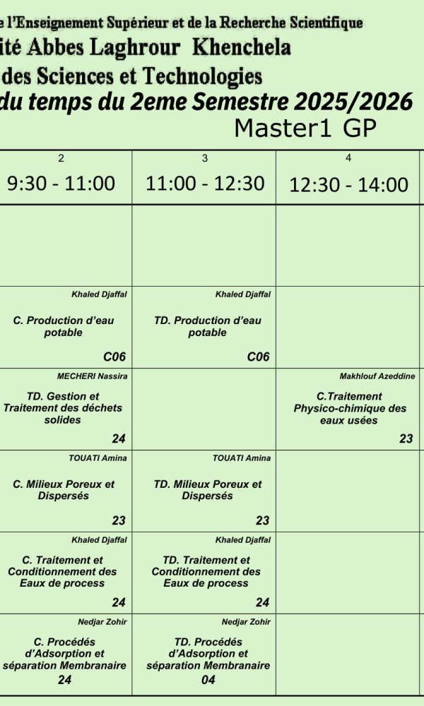À tous les étudiants concernés, Nous vous prions de bien vouloir assister à la séance du Conseil de Discipline qui se tiendra : Date : Dimanche 8 février 2026 Heure : 11h00 Lieu : Bureau du chef du département Étudiantes concernées : Osmann Baldat Nour El Houda – Première année en Sciences de la Matière Mariem Nahdi – Première année en Sciences de la Matière Bouziane Chaimaa – Première année en Sciences de la Matière Nous vous rappelons l’obligation de vous présenter à l’heure précise, muni de votre carte d’étudiant. Cordialement, Le chef du département 6 février 2026...اقرأ أكثر