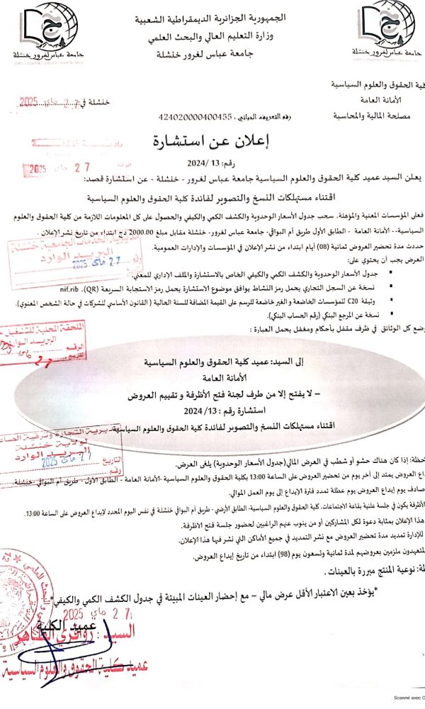 Consultation No. 08/2025 : Achat de fournitures pédagogiques