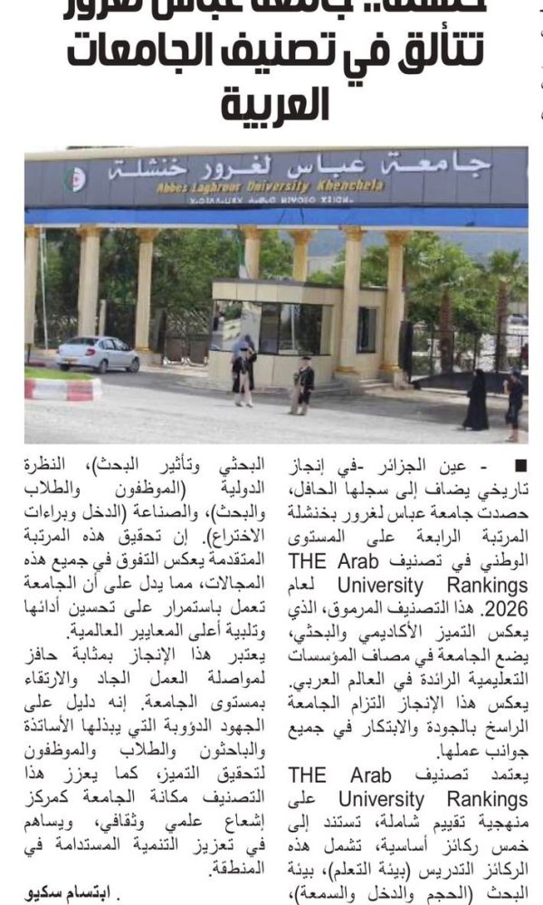 L’université de Khenchela brille dans le classement des universités arabes...اقرأ أكثر