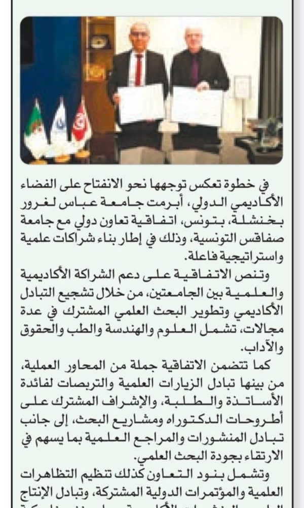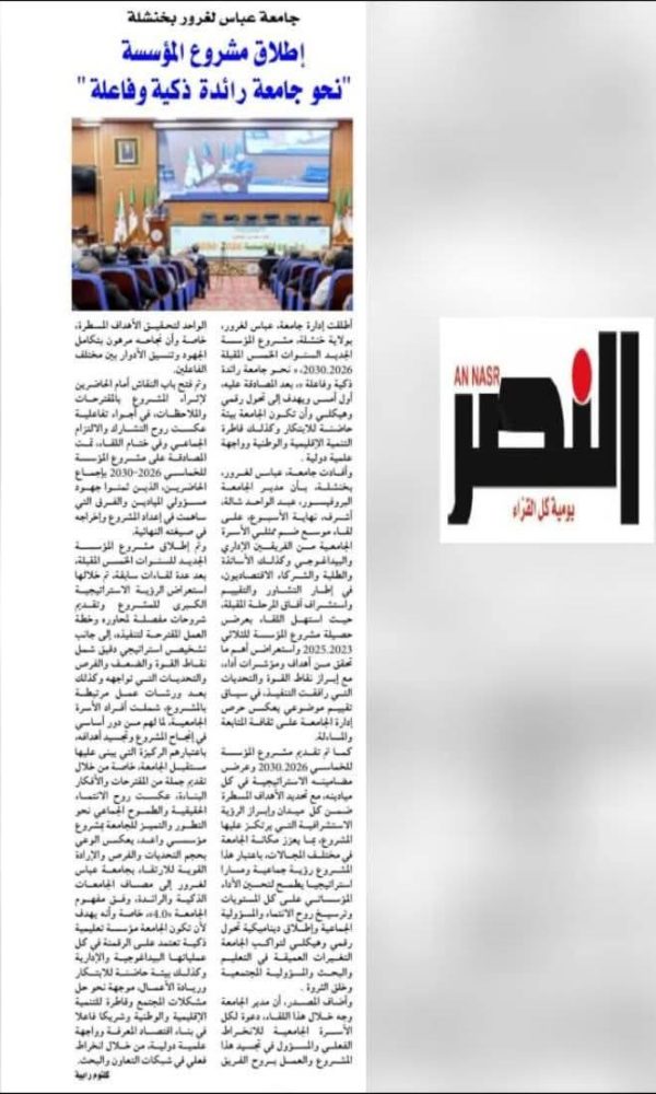 L’université de Khenchela brille dans le classement des universités arabes...اقرأ أكثر