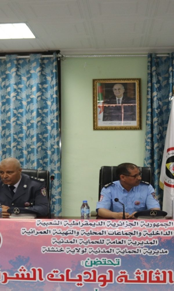 . Journées d’études régionales de Khenchela pour les provinces de l’Est . Ce matin, lundi 23 juin 2025, le gouverneur de Khenchela, M. Salim Harizi, accompagné du vice-président de l’Assemblée populaire provinciale, a inauguré les journées d’études régionales pour les 15 provinces de l’Est. Organisées par la Direction de la protection civile de Khenchela, ces journées de quatre jours ont porté sur le renforcement des capacités de prévention des incendies de forêt. Y ont participé les directeurs des secteurs concernés, les autorités locales et l’équipe média de l’Université Abbas Laghrour de Khenchela....اقرأ أكثر
