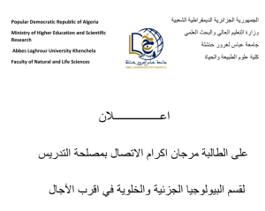 Espace Etudiant Département de biologie cellulaire et moléculaire