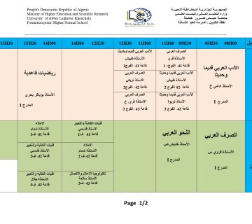 • التاليEmploi du temps hebdomadaire du premier semestre de l’année universitaire 2025–2026 – Deuxième année Sciences Commerciales