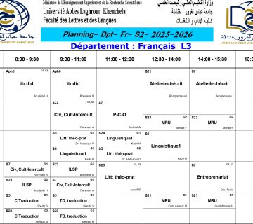 • التاليEmploi du temp S1/ L2