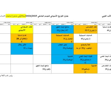 Répartition temporelle du Département de langue et littérature arabes M1