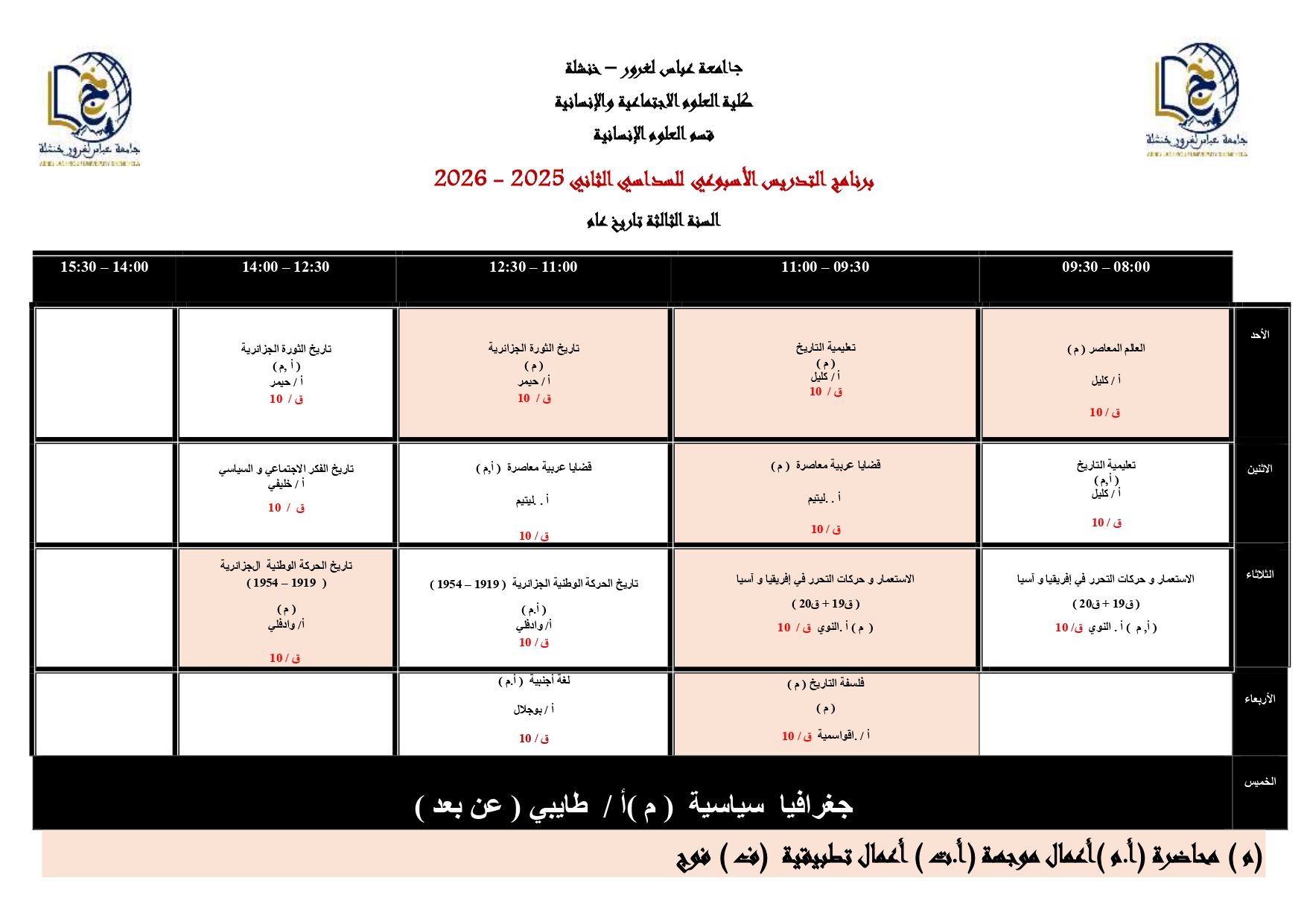 Distribution chronologique – Département des sciences humaines – pour les étudiants de 3e année en médias Activités