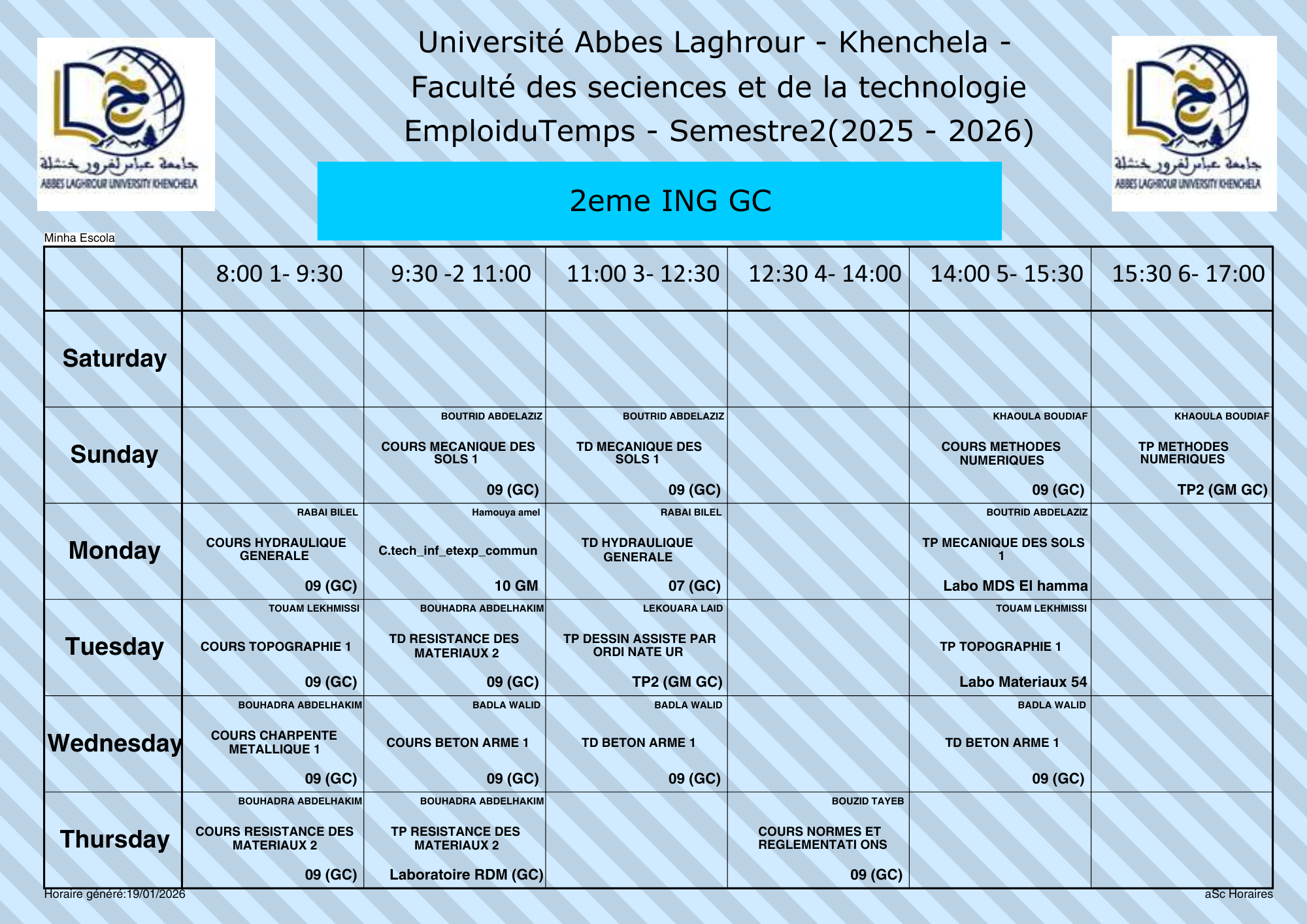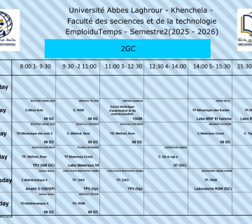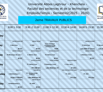 • التاليEmploi du temps du Département de génie civil -L2